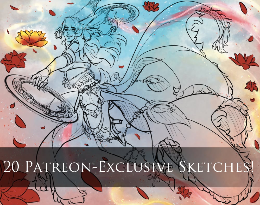 A sketchpack of 20 sketches, most exclusive to my Patreon!